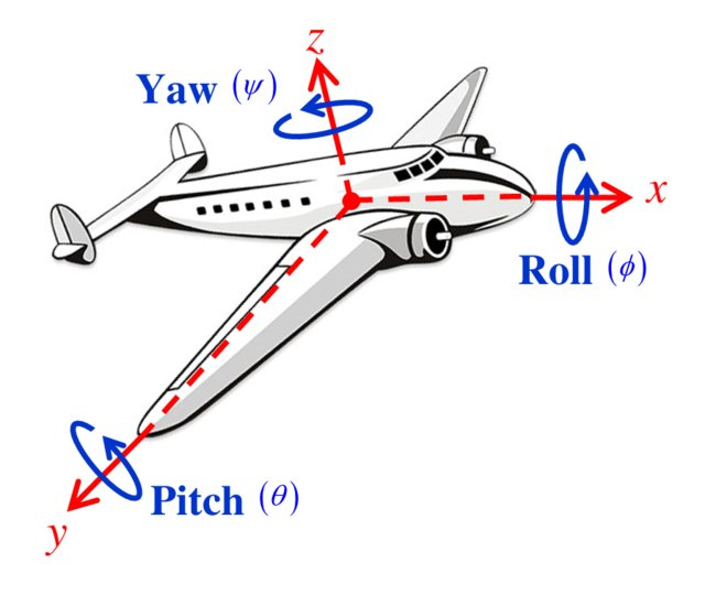 오일러 각도는 서로 다른 3개의 축을 이용해 회전을 분해하여 표현하는 방법이다. 회전하는 순서에 따라 다양한 정의 방법이 있다. 예를 들어 $X$축 중심 회전 → $Y$축 중심 회전 → $Z$축 중심 회전하면 $XYZ$축 회전이 발생한다. 마찬가지로 $ZYZ, ZYX$등 다양한 회전 방법을 정의할 수 있다. 일반적으로는 $ZYX$ 회전 (yaw-pitch-roll)이 사용된다.