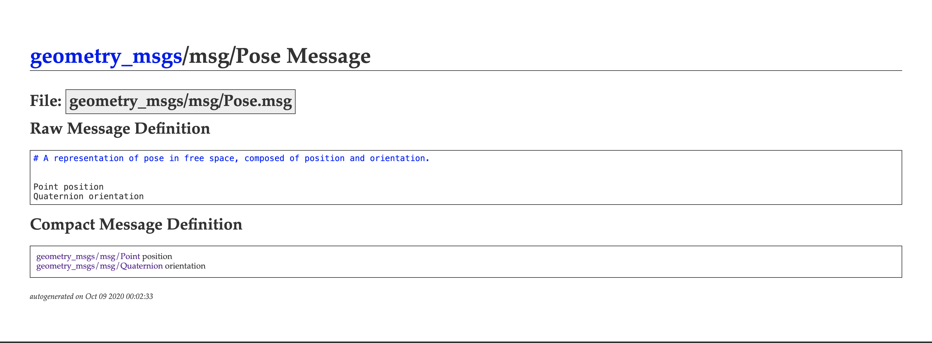 msg/Pose Documentation