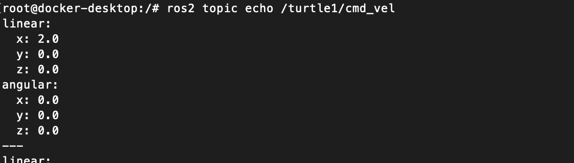 $ ros2 topic echo /turtle1/cmd_vel