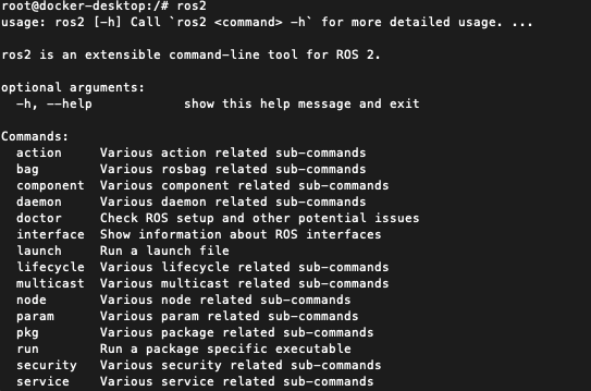 $ docker run -it --net host --name rosTest osrf/ros:foxy-desktop